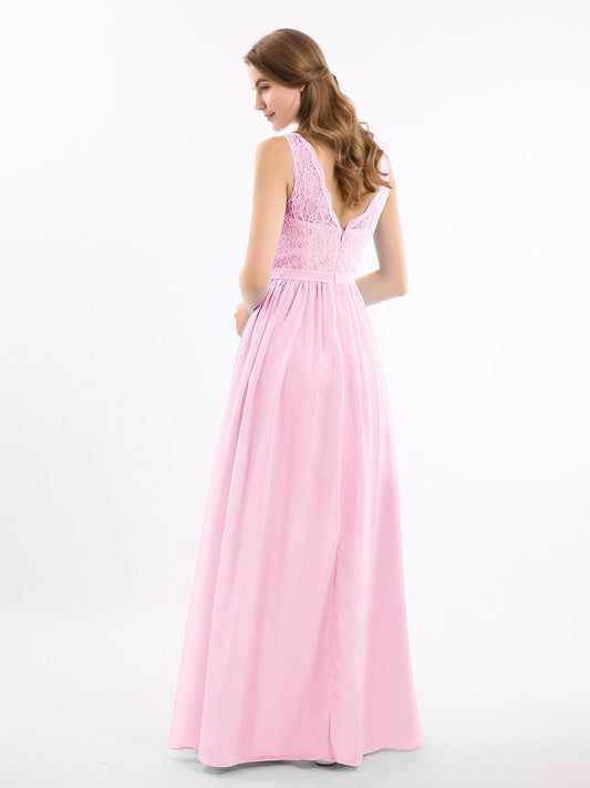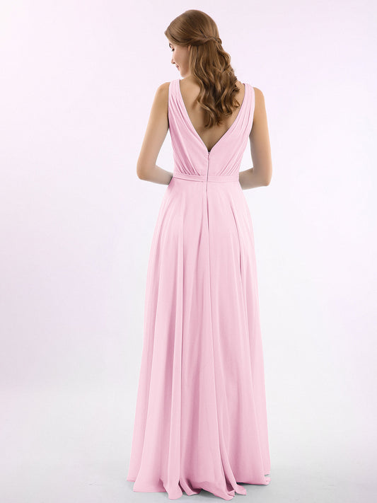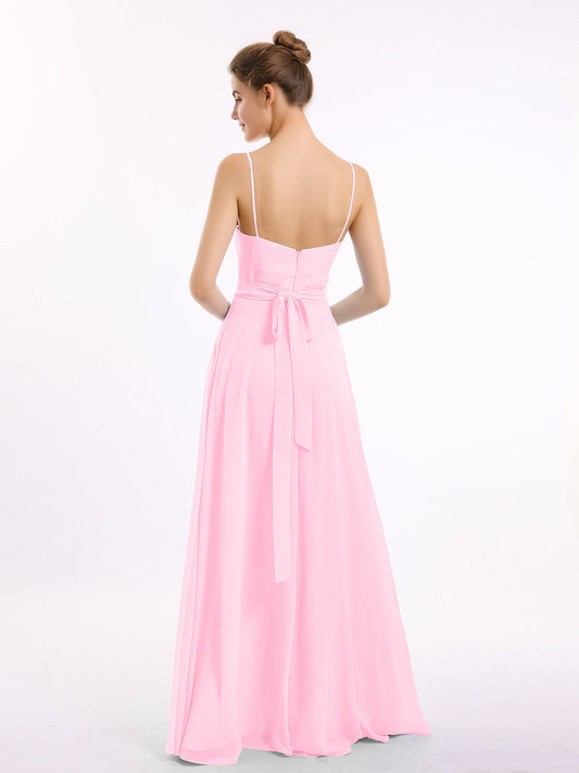 Babaroni VickyVestidos de dama de honor de chiffon con escote en V y tirantes finos Rosa Chicle