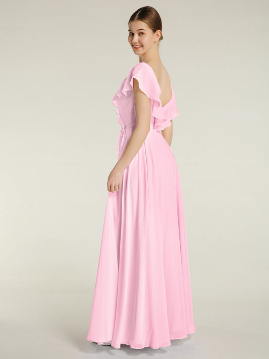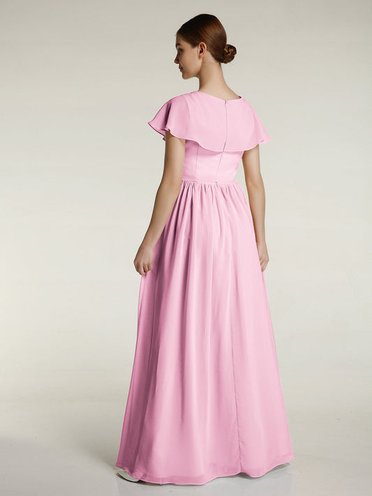 Babaroni LaurenVestidos largos de chiffon estilo princesa con abertura Rosa Chicle