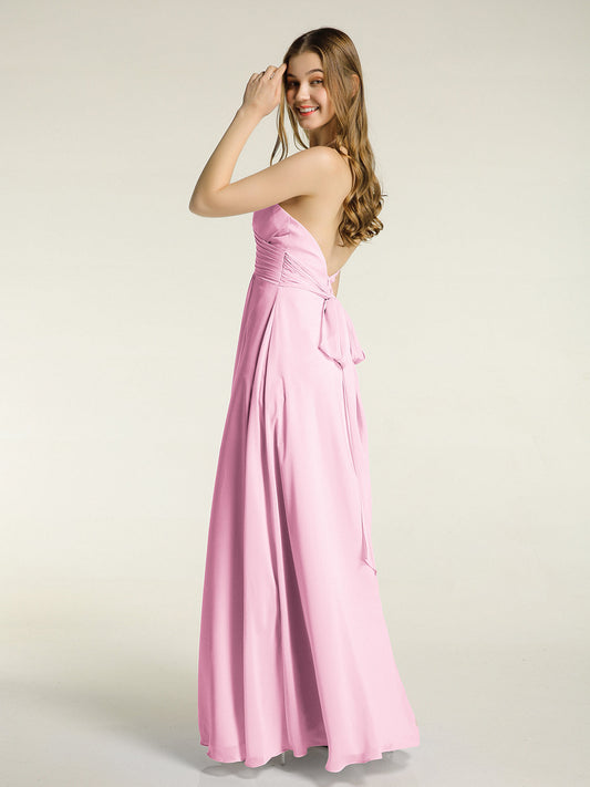 Babaroni MandyVestidos largos de chiffon estilo halter para damas de honor Rosa Chicle