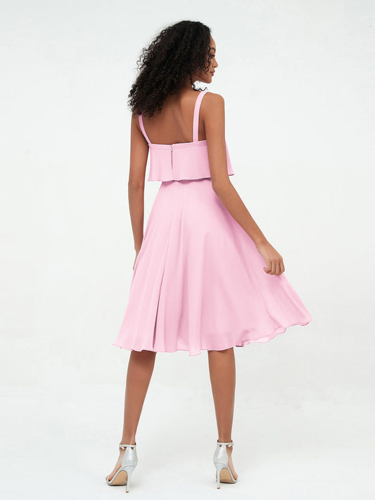 Babaroni AnnaVestidos cortos de chiffon con tirantes para la dama de honor con falda redonda Rosa Chicle