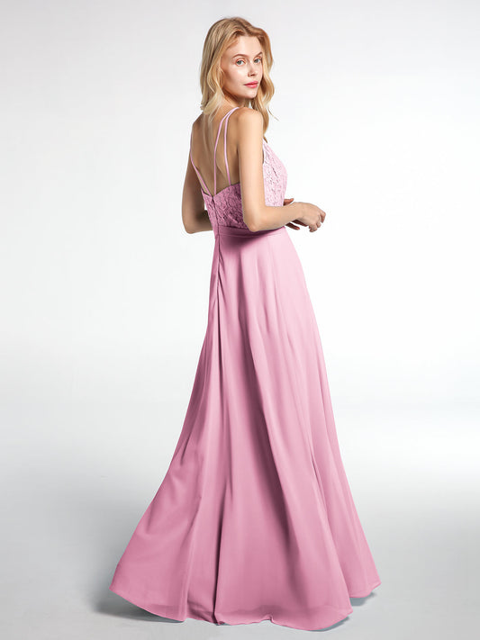 Babaroni LaraineVestido maxi con cuerpo de encaje y falda de chiffon con escote en V Rosa Chicle