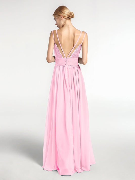 Babaroni CoraVestido largo de dama de honor de chiffon con tirantes dobles Rosa Chicle