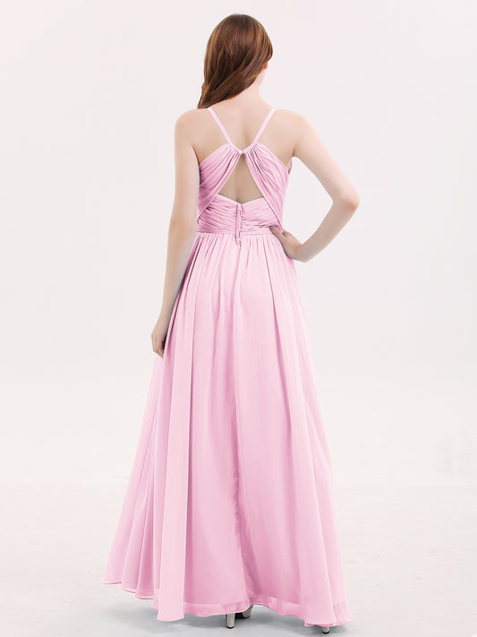 Babaroni ZenobiaZenobia Cabestro Gasa Vestidos De Dama De Honor Con Lazo Faja Rosa Chicle