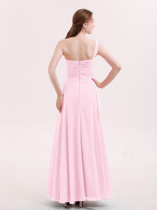 Babaroni YeddaYedda Un Hombro Gasa Largo Corte De Dama De Honor Rosa Chicle