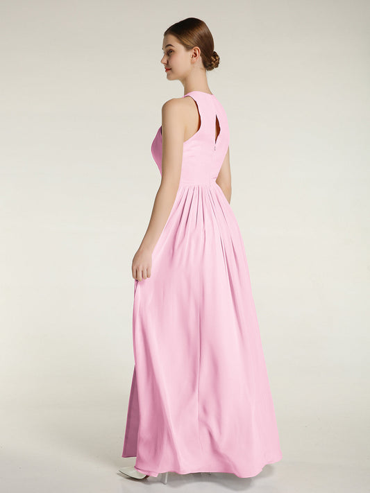 Babaroni LaurenVestidos largos de chiffon estilo princesa con abertura Rosa Chicle