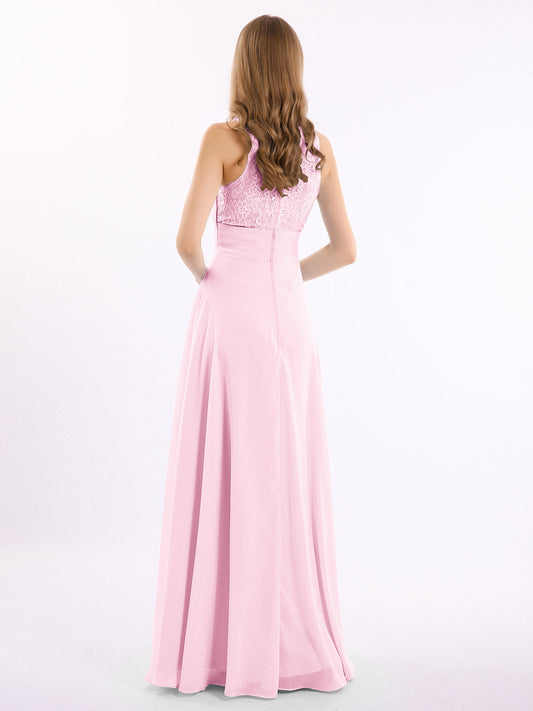 Babaroni LucilleVestidos largos de chiffon con encaje en escote en V profundo y espalda descubierta Rosa Chicle