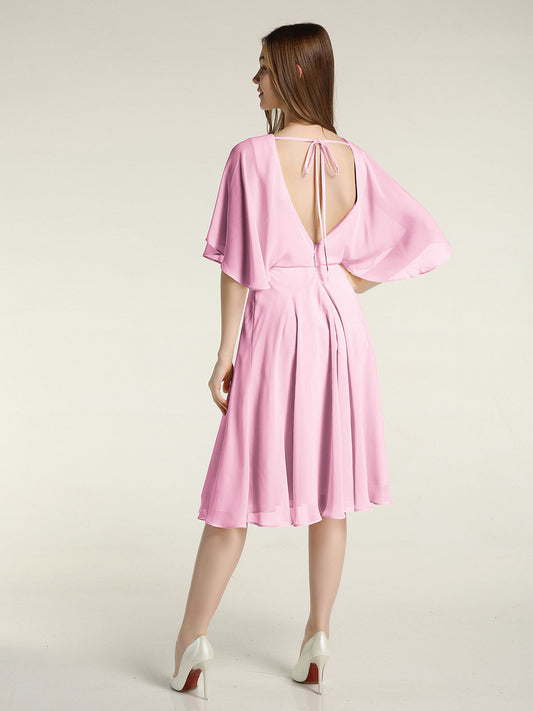 Babaroni SelenaVestidos cortos de chiffon con escote tipo scoop y mangas de volantes Rosa Chicle