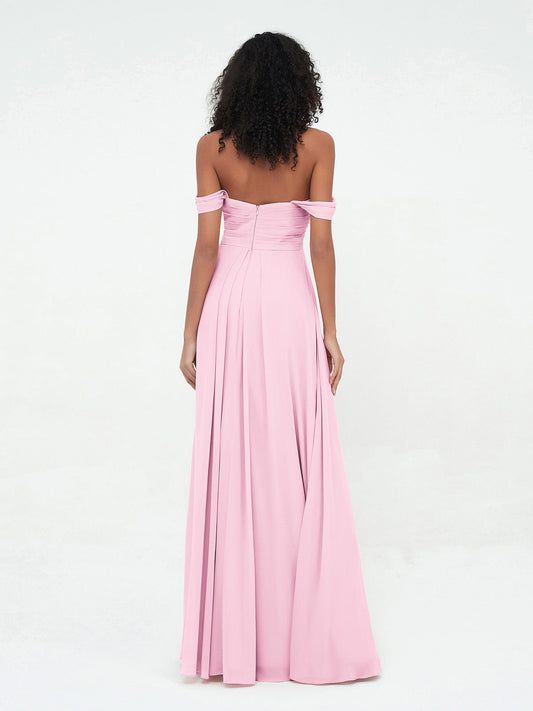 Babaroni LindsayLindsay Fuera Del Hombro Corte Imperial Vestidos De Dama De Honor Rosa Chicle