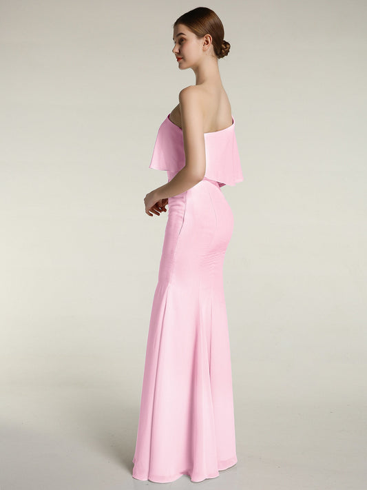 Babaroni FloraVestidos sirena de un solo hombro con abertura Rosa Chicle