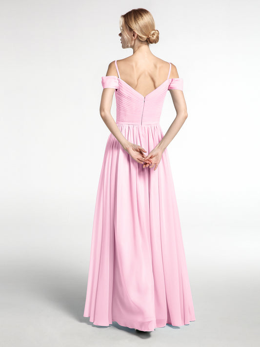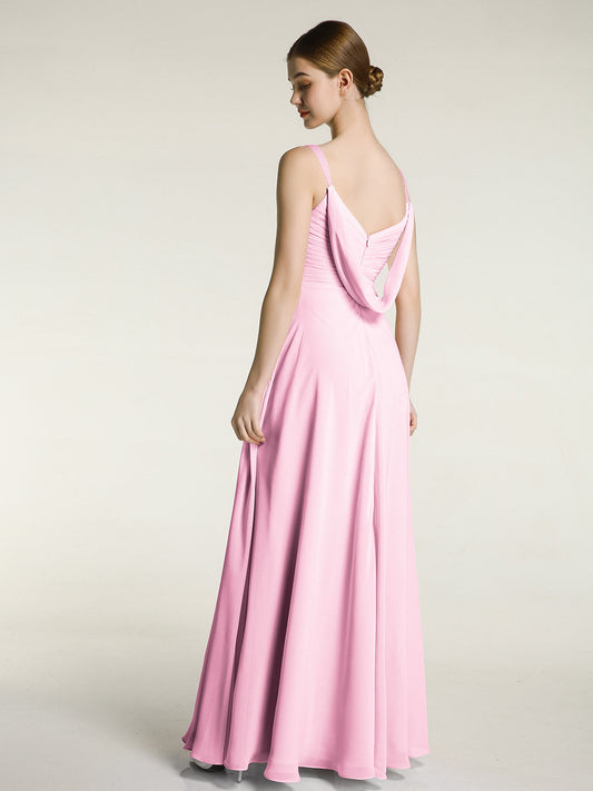 Babaroni VitaVestido de dama de honor de chiffon con escote en V y espalda descubierta Rosa Chicle