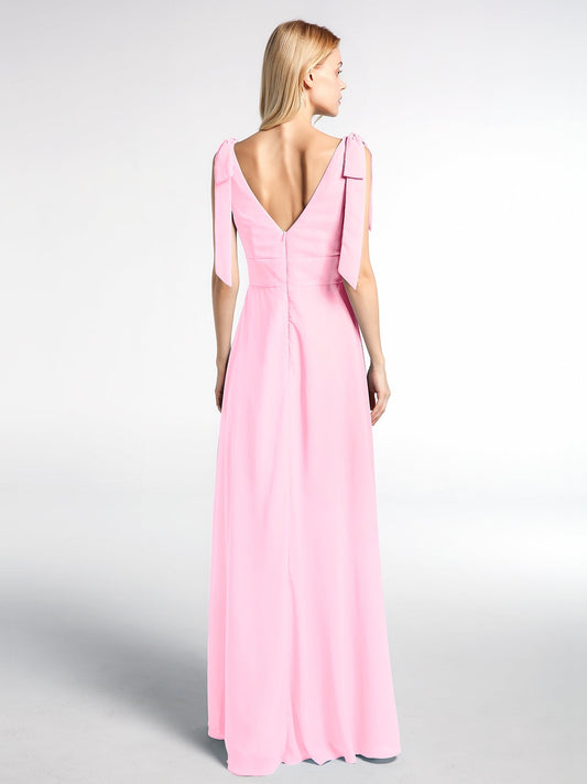 Babaroni CassiopeiaCassiopeia Escote En V Gasa Largo Vestido Con Arco Rosa Chicle