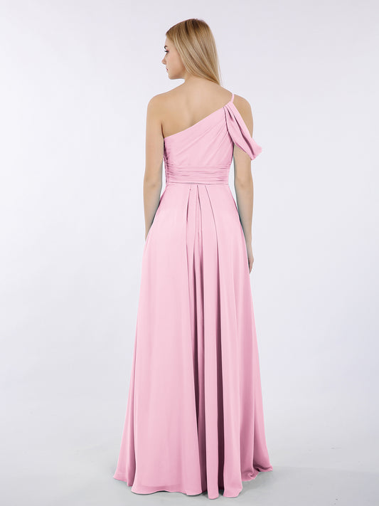 Babaroni PrudencePrudence Un Hombro Gasa Largo Cortes De Dama De Honor Rosa Chicle