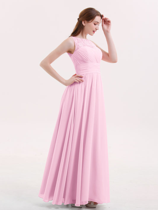 Babaroni PearlPearl Largos Vestidos De Dama De Honor Con Mangas De La Tapa Rosa Chicle