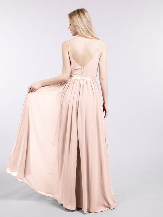 Babaroni LeonaLeona Tirante Espagueti Gasa Vestido De Dama De Honor Rosa Perlado