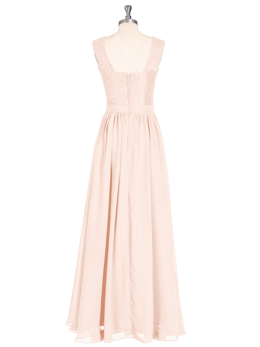 Babaroni VivienVivien Hombro Tirante Encaje Y Gasa Largo Vestido Rosa Perlado