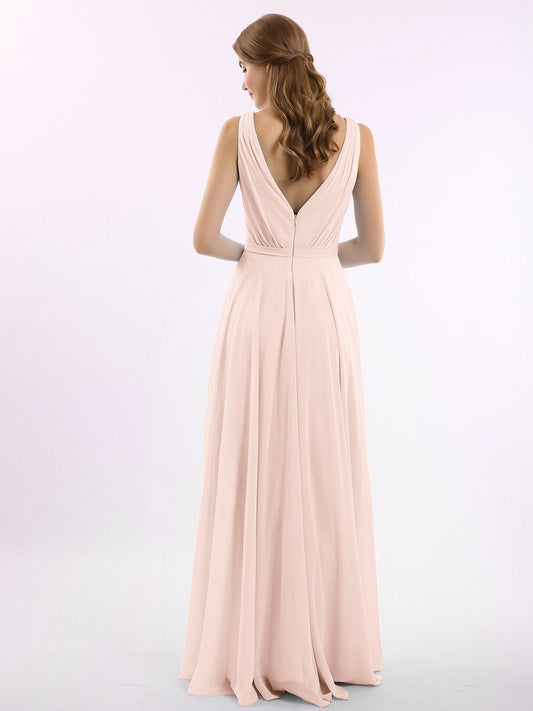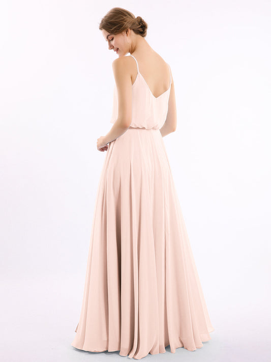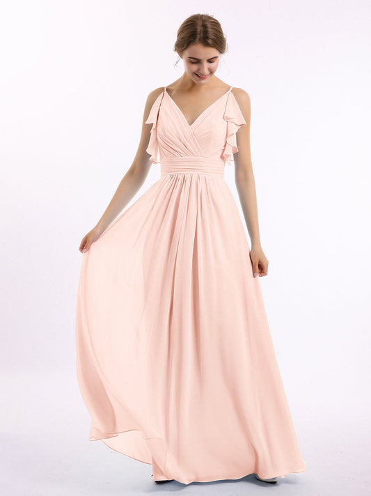 Babaroni VickyVestidos de dama de honor de chiffon con escote en V y tirantes finos Rosa perlado