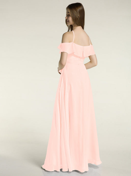 Babaroni LesleyVestidos largos de chiffon estilo halter con doble tirante Rosa perlado