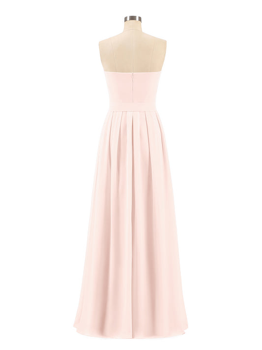 Frederica Sin Tirante Gasa Largo Vestido De Dama De Honor Rosa Perlado