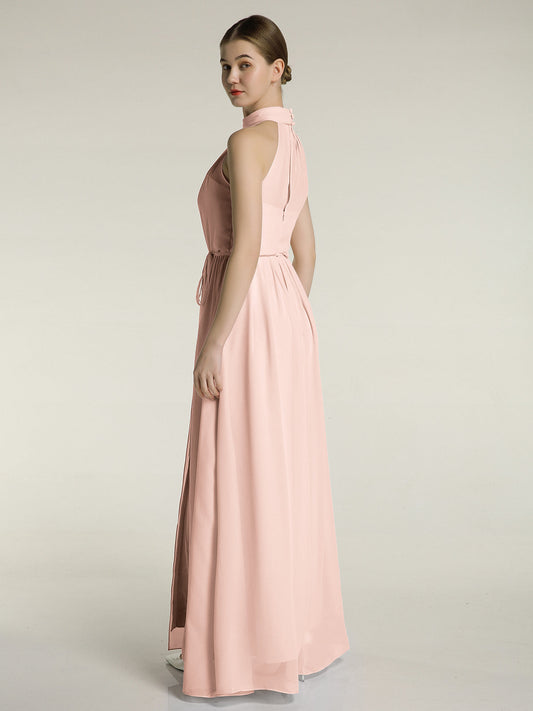 Babaroni MandyVestidos largos de chiffon estilo halter para damas de honor Rosa perlado