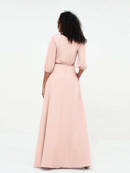 Babaroni UnaVestidos máximos de chiffon con escote en V profundo y mangas 1/2 Rosa perlado