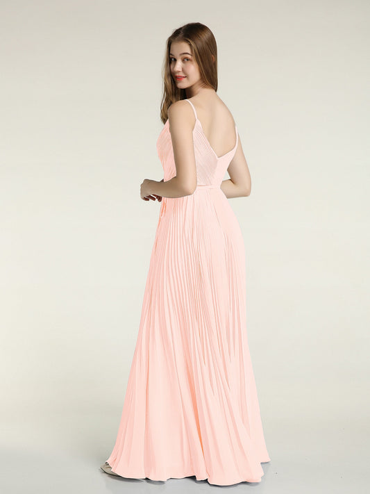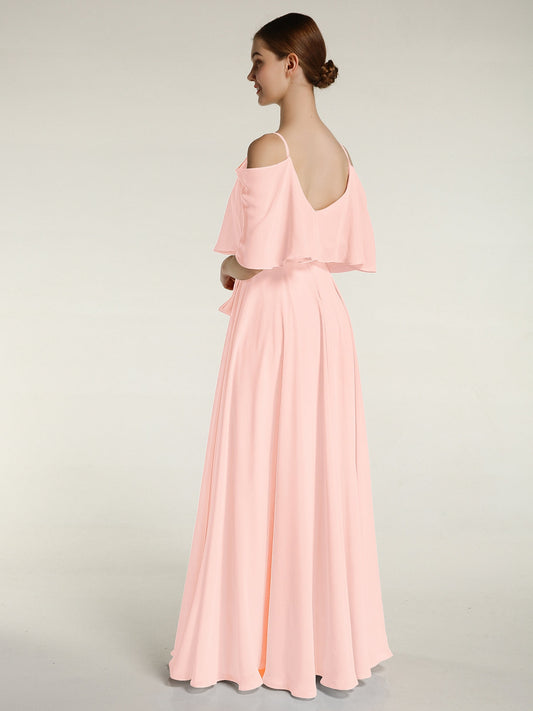 Babaroni MaudSencillos vestidos largos de chiffon con tirantes finos y abertura Rosa perlado