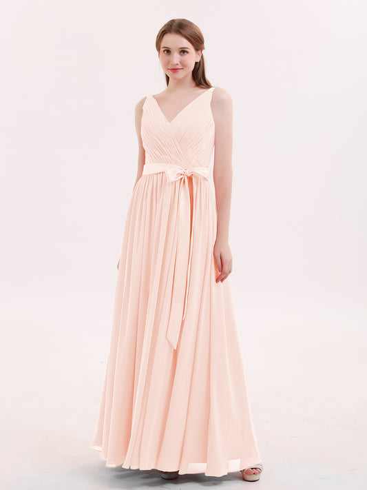 Babaroni KamaKama Escote En V Vestido De Dama De Honor Con Saten Faja Lazo Rosa Perlado