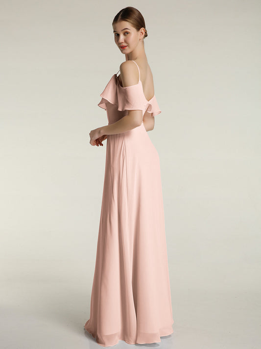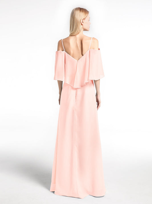 Babaroni JessicaVestidos de dama de honor de chiffon con tirantes finos Rosa perlado