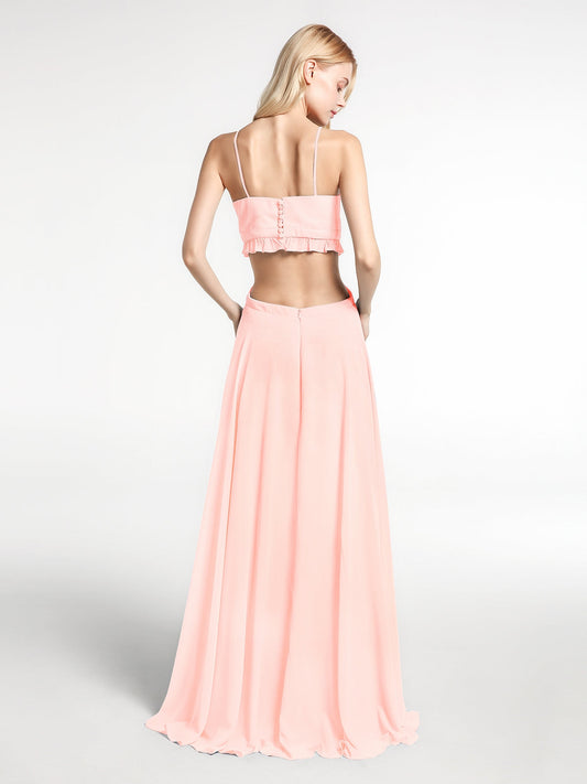 Babaroni AmyVestidos largos de dama de honor de chiffon con tirantes de cuello halter Rosa perlado