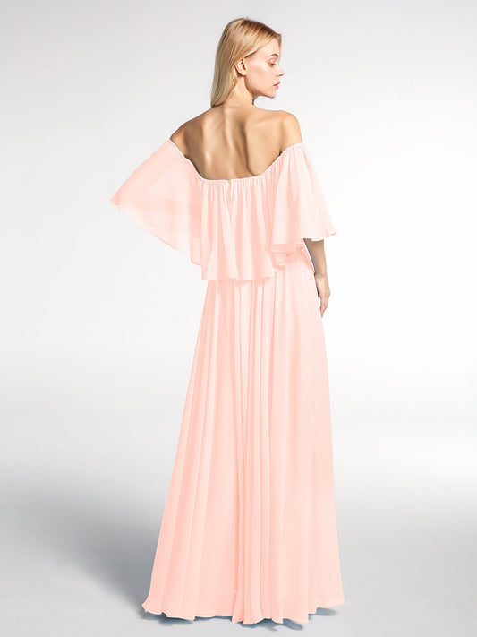 Babaroni RoseVestido maxi de chiffon con hombros descubiertos y volantes Rosa perlado