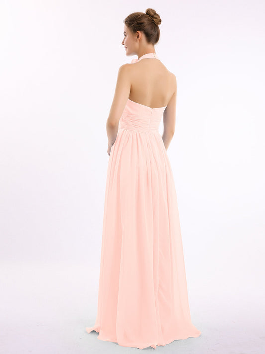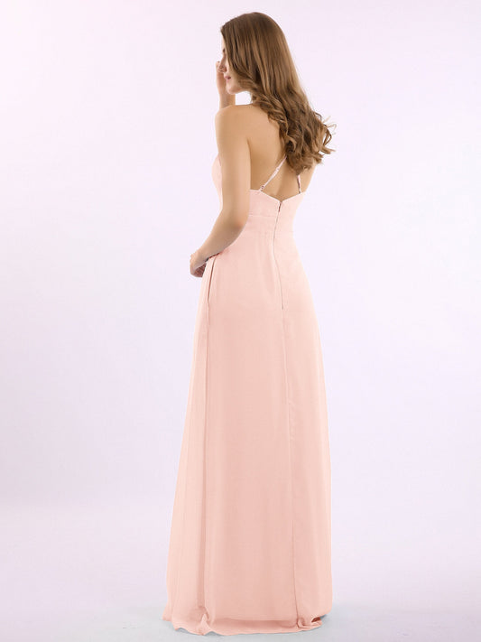 Babaroni LesleyVestidos largos de chiffon estilo halter con doble tirante Rosa perlado