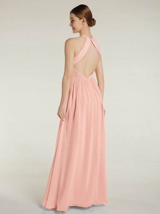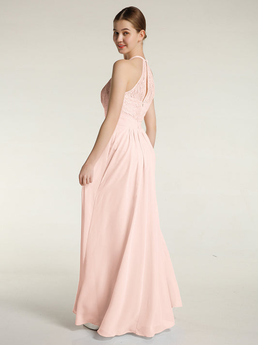 Babaroni AmandaVestidos largos de chiffon y encaje estilo halter Rosa perlado