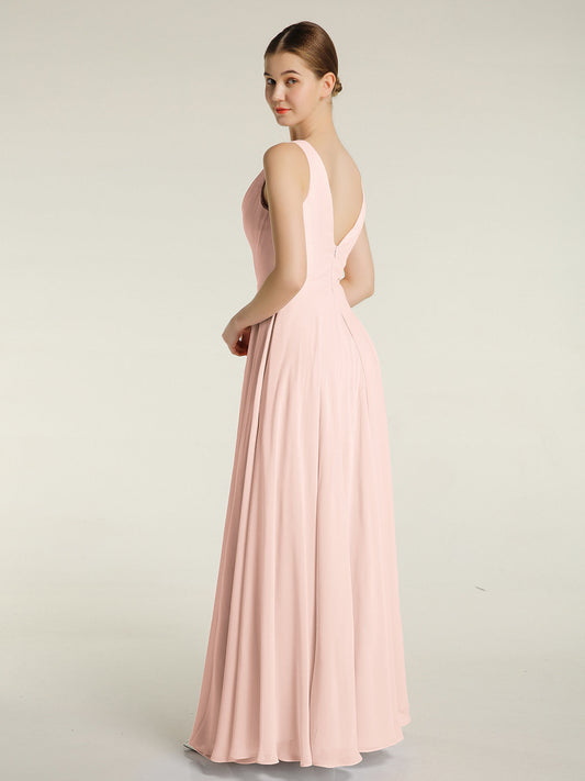 Babaroni MireilleVestidos largos de chiffon con escote en V y bolsillos Rosa perlado