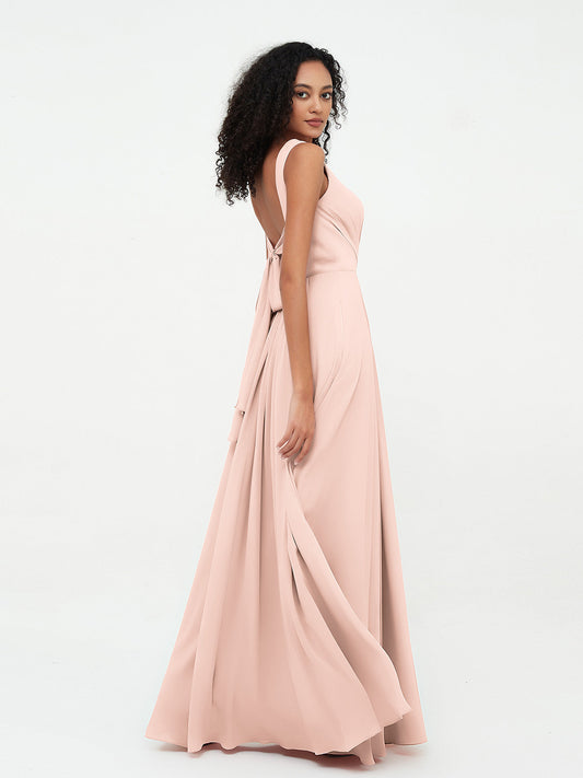 Babaroni VitaVestido de dama de honor de chiffon con escote en V y espalda descubierta Rosa perlado