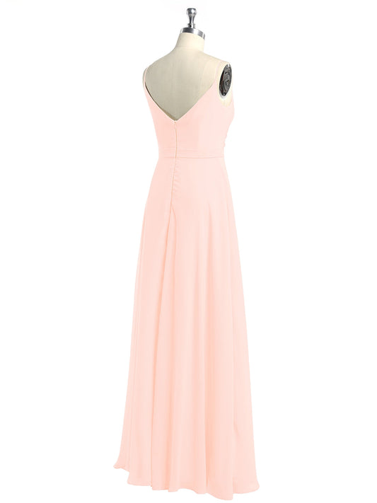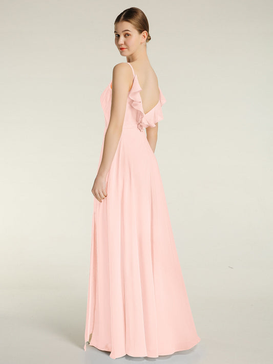 Babaroni CarolVestidos sencillos de chiffon con escote en V Rosa perlado
