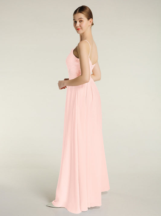 Babaroni FeliciaVestidos largos de chiffon con tirantes finos y escote en corazón Rosa perlado