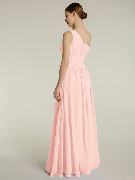 Babaroni MildredVestidos largos de chiffon de un hombro con bolsillos Rosa perlado