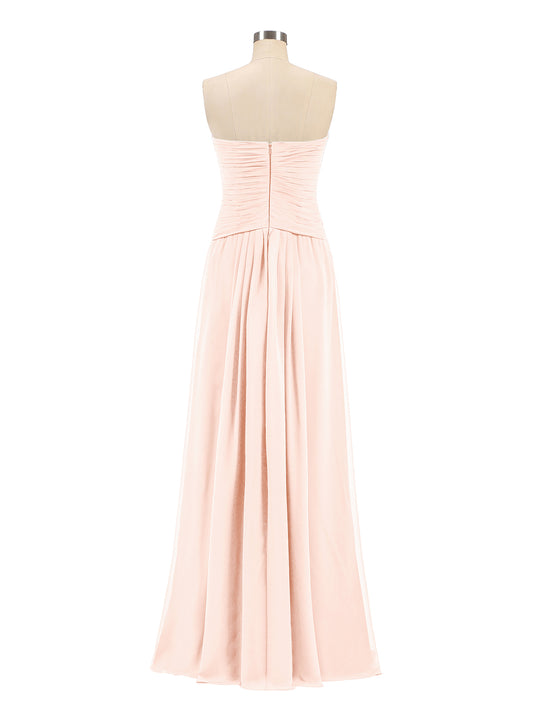 Babaroni FredericaFrederica Sin Tirante Gasa Largo Vestido De Dama De Honor Rosa Perlado