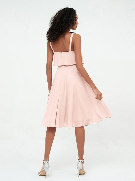 Babaroni AnnaVestidos cortos de chiffon con tirantes para la dama de honor con falda redonda Rosa perlado