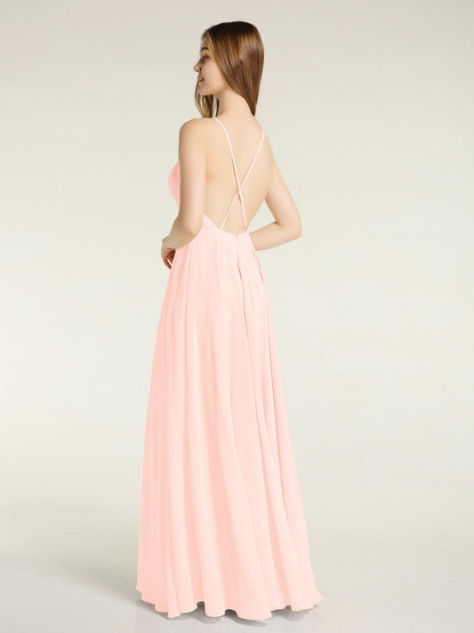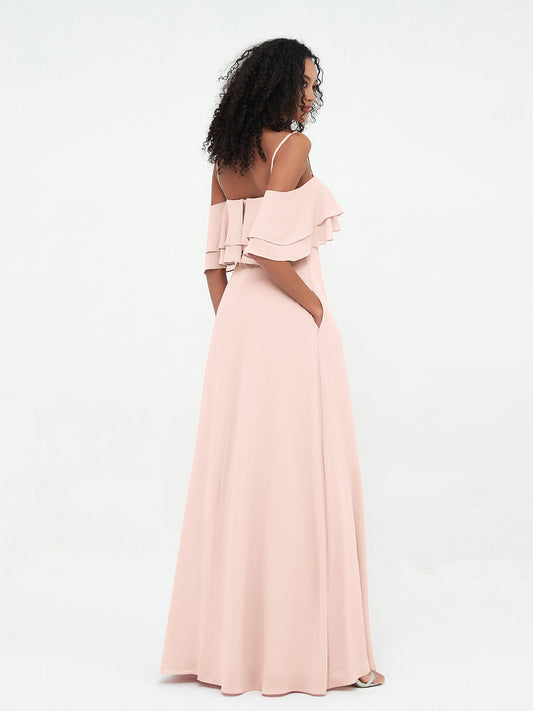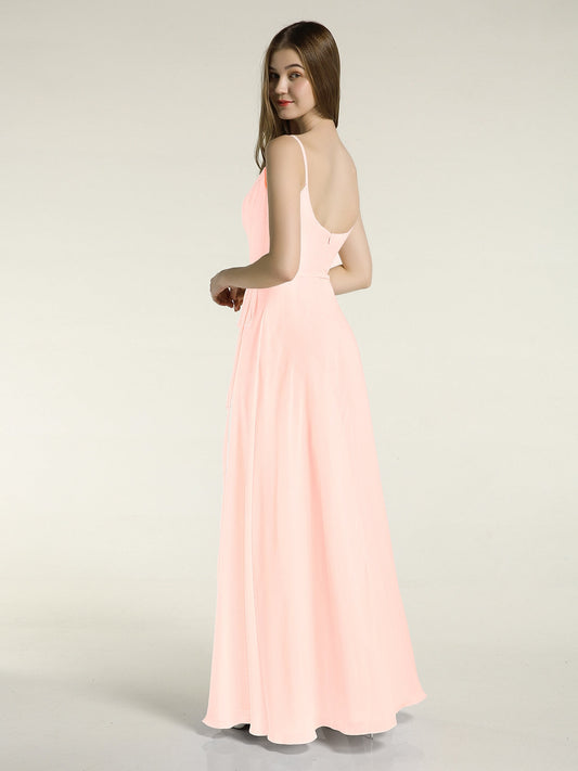 Babaroni MaudSencillos vestidos largos de chiffon con tirantes finos y abertura Rosa perlado