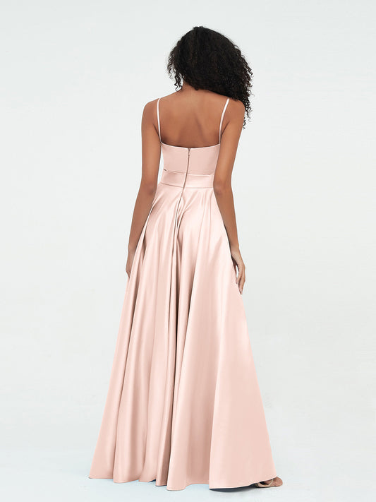 Babaroni MyrnaVestidos máximos de satén estilo A-line con tirantes spaghetti Rosa perlado