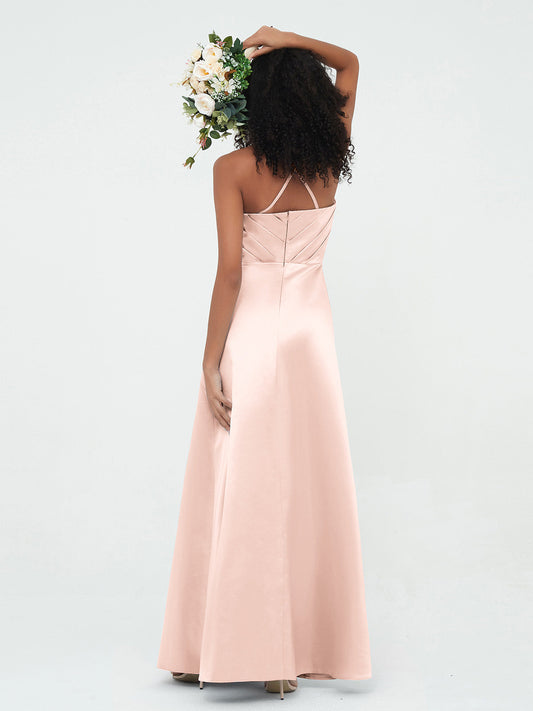 Babaroni RivaVestidos largos de satén con tirantes spaghetti y cuerpo plisado Rosa perlado