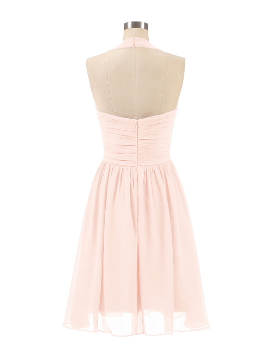 Babaroni JodieJodie Cabestro Cuello Alto Gasa Vestido De Dama De Honor Rosa Perlado