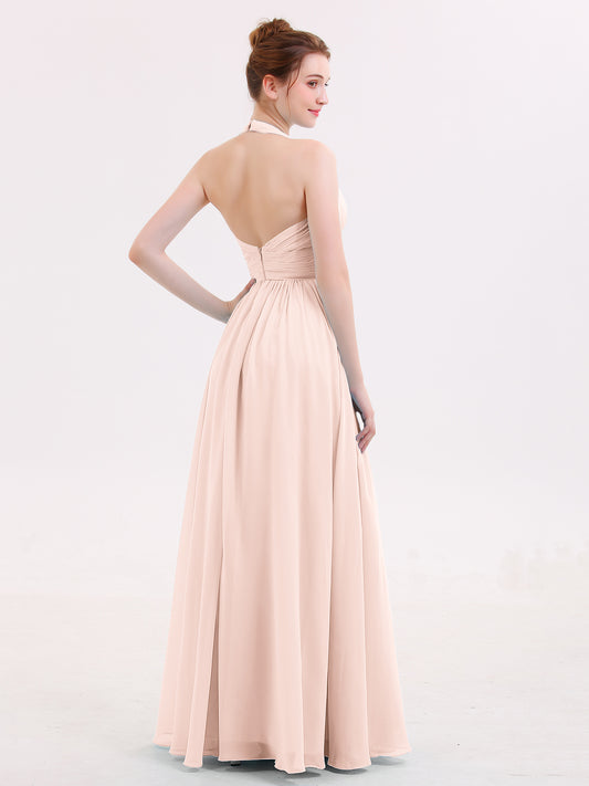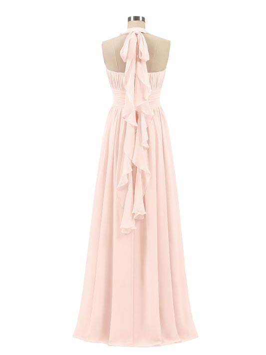 Babaroni DorisDoris Cabestro Gasa Maxi Vestido De Dama De Honor Rosa Perlado