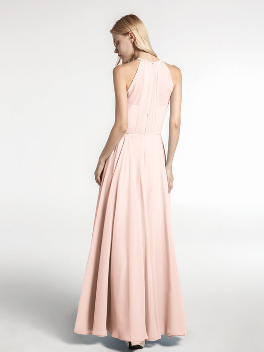 Babaroni AmyVestidos largos de dama de honor de chiffon con tirantes de cuello halter Rosa perlado