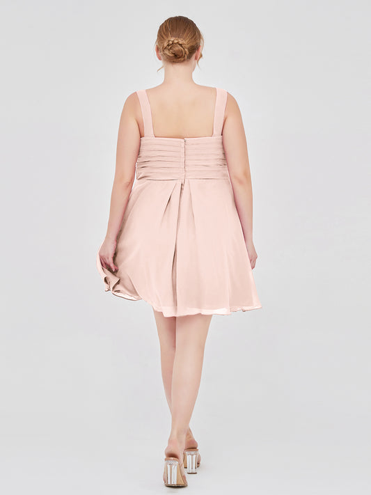 Babaroni PenelopePenelope Escote En V Gasa Corto Vestido De Dama De Honor Rosa Perlado