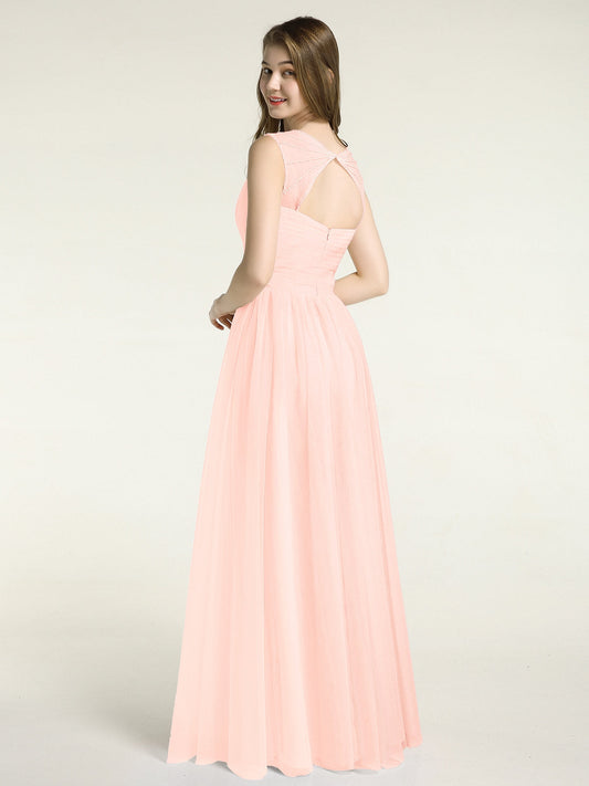 Babaroni EvelynVestidos de tul con espalda convertible y largo hasta el suelo Rosa perlado