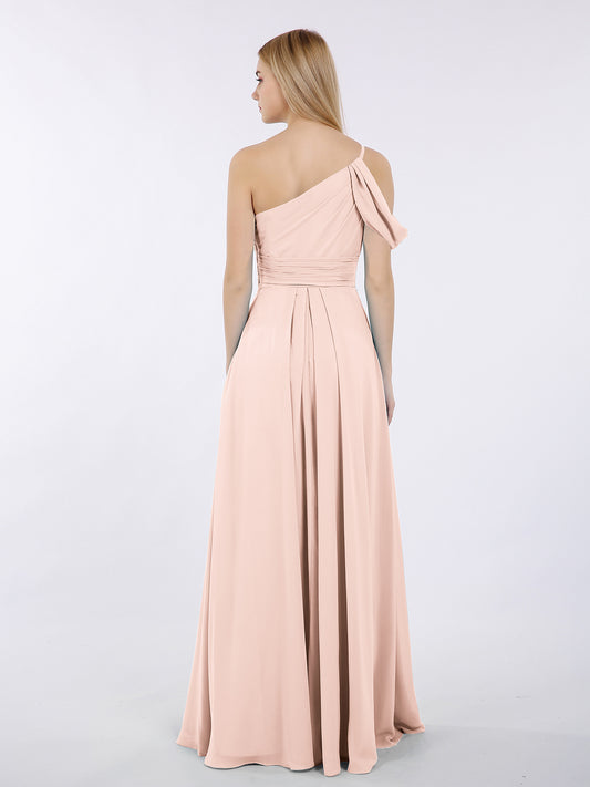 Babaroni PrudencePrudence Un Hombro Gasa Largo Cortes De Dama De Honor Rosa Perlado
