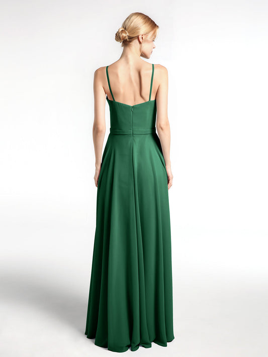 Babaroni EllaVestido sencillo de chiffon con tirantes finos y escote en forma de muesca Verde Oscuro