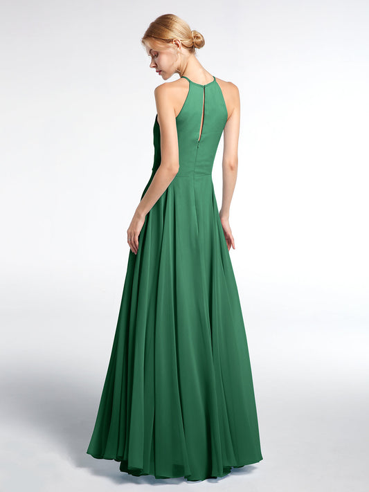 Babaroni SandraVestidos sencillos de dama de honor de chiffon con espalda baja Verde Oscuro