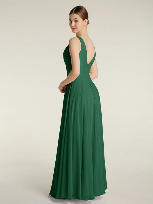 Babaroni CarolVestidos sencillos de chiffon con escote en V Verde Oscuro